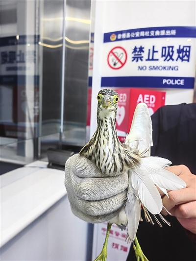 结合鸟儿的外形特征,民警初步判断它是一只池鹭,国家“三有”保护动物(国家保护的有益的或者有重要经济、科学研究价值的陆生野生动物)。池鹭通常栖息于稻田、池塘、湖泊、水库和沼泽湿地等水域,有时也见于水域附近的竹林和树上,春季通常在4月初到4月中旬迁至北方繁殖地。秋季多于9月末10月初开始往南迁徙。